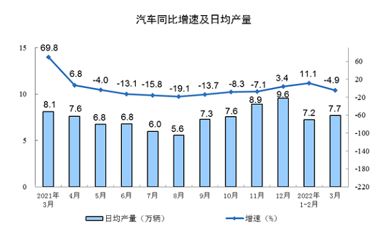 其中,汽车制造业工业增加值一季度同比增长4.0%,但3月当月同比下降1.0%。从产能利用率来看,一季度,汽车制造业同比下降6.4个百分点至72.1%;然而,得益于新能源汽车产量同比大幅增长140.8%至134.6万辆,全国汽车生产总量仍达到667.3万辆,同比增长4.9%。