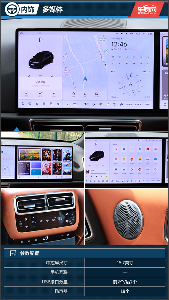 理想L6的车机标配高通骁龙8295P芯片,屏幕触控延迟不到90毫秒,拥有出色的车机交互流畅度。虽然理想L6不支持任何手机互联,但车机内置了高德导航、QQ音乐、爱奇艺、腾讯视频等当下主流应用,基本能够满足当下消费者的使用需求。并且理想L6的智能语音系统保持了理想品牌一贯的优势,支持语音免唤醒词、语音分区域唤醒识别、连续语音识别以及可见即可说,非常智能、实用,反应速度也较快。理想L6标配19个扬声器,评测车还配备理想MEGA同款旗舰级铂金音响,可进行自定义音效调节,音质表现较为出色,适合播放流行音乐。