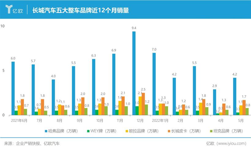 可以看出,哈弗品牌、坦克品牌和长城皮卡,正努力摆脱疫情等客观因素影响回弹销量,经典品牌在疫情冲击之后市场依然强劲。但新能源品牌,却着实是长城汽车难以弥补的痛。